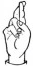 На ћирилици написано ХРАНИМИР КОЛАР састоји се из 13 слова [?]. Исписано ћириличном једноручном азбуком за глувонеме: